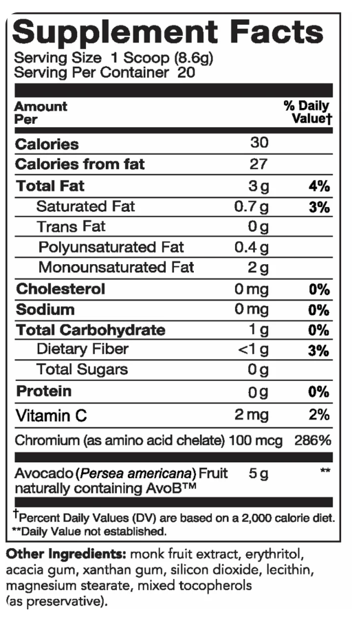 - Contains AvoB™ for proven metabolic support